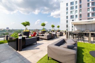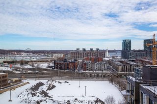 Luxueux studio au 12e étage des Condominiums Auguste et Louis Phase 1, avec balcon (rare pour les studio) et vue imprenable. Inclut rangement intérieur. Emplacement idéal sur René-Lévesque E. coin Papineau, proche métro et services. Profitez du chalet urbain, gym, piscine et terrasse sur le toit avec BBQ. Découvrez le charme du quartier historique des Faubourgs -- visitez dès maintenant!