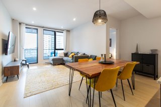 Condo moderne de 2 chambres et 2 salles de bain (environ 91 m²) dans l'immeuble Oria Phase 1, au 605, rue de l'Escale, à Brossard. Situé au 5e étage, ce condo offre un espace de vie lumineux à aire ouverte, une cuisine élégante avec comptoir-lunch et un balcon privé. Il comprend une place de stationnement intérieure et un casier. Profitez d'aménagements haut de gamme tels qu'une piscine, un centre de conditionnement physique, un spa, un sauna et un salon pour résidents. Idéalement situé près du Quartier DIX30 et à quelques pas de la station REM, il permet un accès rapide au centre-ville.